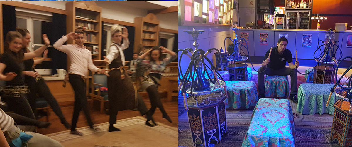 Wij beschikken (in eigen beheer)over een geweldig waterpijpenterras, met zoveel waterpijpen als je wenst en een leuke mannelijke of vrouwelijke begeleider! Wij maken één offerte, voor kussens, kleden, pijpen en een begeleider; alles wordt door ons verzorgd!! Wat dacht u van een mooi waterpijpenterras, met een nog mooiere, sexy buikdanseres,die af een toe een leuk showtje geeft en in de pauzes rondhangt bij de shisha’s om een praatje te maken met de gasten! Dat is allemaal mogelijk!!
